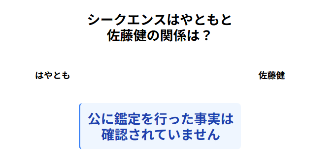 調査した限りでは、シークエンスはやともさんが佐藤健さんを公に鑑定を行ったという記録は見つかりませんでした。