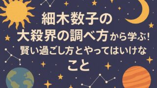占い全般 細木数子の大殺界の調べ方から学ぶ!賢い過ごし方とやってはいけないこと 細木数子の大殺界の調べ方を正しく理解して運気を味方にしよう。六星占術で自分の流れを知り、細木数子の大殺界の調べ方から学ぶ賢い過ごし方と注意点を解説します。 2025.10.09 占い全般