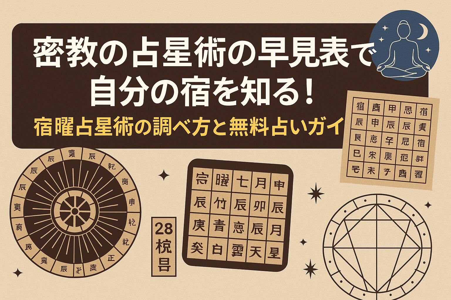 この記事では、密教占星術の早見表を使って自分の宿を知る方法や、宿曜占星術の調べ方、さらに無料で使える占いツールまで詳しく紹介します。