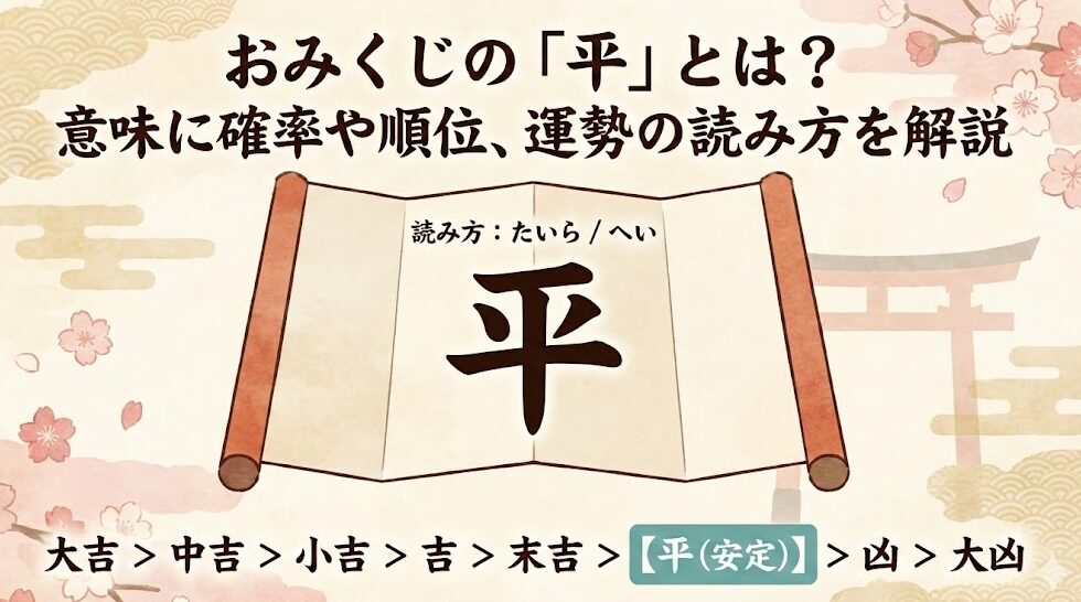 初詣や旅先の神社で、何気なく引いたおみくじ。「大吉かな、それとも吉かな?」とワクワクしながら開いてみた瞬間、そこに書かれていたのは見たこともない「平」という一文字。思わず「えっ、これなんて読むの?」「もしかして凶よりも悪いの?」と、頭の中にハテナマークがいっぱいになってしまった経験、ありませんか。