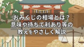 おみくじにある「待ちて利あり」や「山気を出すな」という言葉。おみくじの相場とはどういう意味なのか、株や投資をしない人にもわかるよう丁寧に解説します。買い物や転職など日常の決断にも役立つ、おみくじの相場とは本来どんな意味を持つのかを知り、神様の助言を人生に活かしましょう。