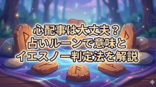 不安で眠れない夜を過ごしていませんか?この記事では、あなたの抱える心配事が大丈夫かを知るルーン占いのワンオラクル手順と、全24文字の意味を詳しく解説します。YES/NO判定法を使えば初心者でも今すぐ実践可能。心配事は大丈夫なのかルーン占いの結果から読み解き、ユング心理学に基づく深い知恵で心の迷いを断ち切りましょう。